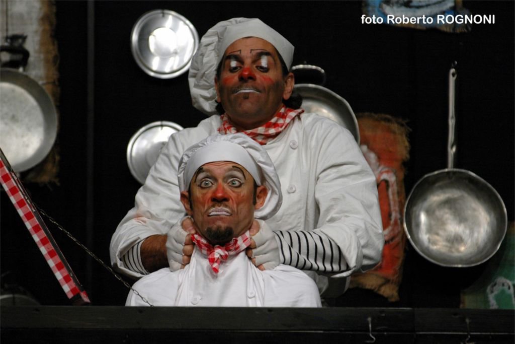 - Due cuochi-clown trasformano pane e mela in un viaggio comico nel mondo del cibo, dove minuscoli personaggi svelano ai bambini segreti e meraviglie degli alimenti.