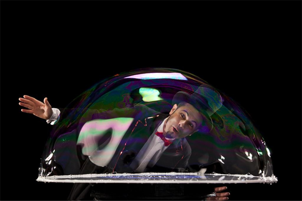 - Un maestro delle bolle costruisce un concerto fatto di aria e luce: bolle giganti e giochi visivi trasformano la scena in un’esperienza incantata per tutte le età.